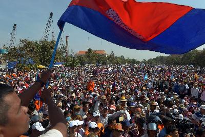 Ông Tea Banh kết luận “Luật pháp không cho phép họ chặn đường. Làm tắc nghẽn liên lạc. Không để mọi việc đi quá xa. N. T. Một cuộc biểu tình của phe đối nghịch Campuchia. Tướng Tea Banh khẳng định biểu tình là hợp pháp. Ảnh: AFP/TTXVN Phát biểu tại lễ khánh thành tòa nhà thể nghiệm khoa học của Lực lượng vũ trang trí gia Campuchia (RCAF).
